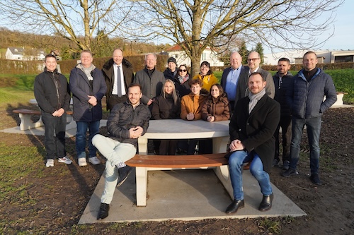Noch ist der Boden etwas matschig. Noch erkennt man die Spuren, die die schweren Maschinen in den vergangenen Wochen hinterlassen haben. Doch das wird sich ändern, spätestens mit dem Einsetzen der Vegetation im nächsten Frühjahr. Dann soll Gras wachsen zwischen den Bänken und Tischen, die seit kurzem hinter der Sporthalle des Königsbacher Bildungszentrums stehen. Mit Unterstützung des Fördervereins, der Volksbank pur und dem Schulträger hat das Lise-Meitner-Gymnasium (LMG) dort ein Klassenzimmer im Grünen eingerichtet: einen Ort, der der gesamten Schulgemeinschaft zugutekommen soll, sowohl Schülern als auch Lehrern und Eltern. „So etwas kann man nur im Zusammenwirken schaffen“, sagt Hartmut Westje-Bachmann. Der Direktor sieht in dem Projekt „eine schöne Aufwertung für unseren ohnehin schon attraktiven Schulhof“ und ein starkes Signal. Erst recht in Zeiten, in denen es auch mit Blick auf die finanzielle Lage oft heiße, man könne sowieso nichts bewirken. Nicht nur Westje-Bachmann ist fest überzeugt, dass das grüne Klassenzimmer spätestens dann gut angenommen wird, wenn es draußen wieder wärmer ist.