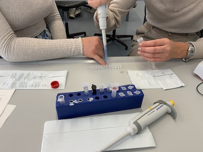 Unsere SchülermentorInnen werden während eines mehrtägigen Lehrgangs am KIT Karlsruhe ausgebildet und mit notwendigen molekularbiologischen Methoden und Arbeitsweisen vertraut gemacht. Ein professionelles Kommunikationstraining sowie wiederkehrende Fortbildungen runden die Vorbereitung auf ihre Aufgaben ab.